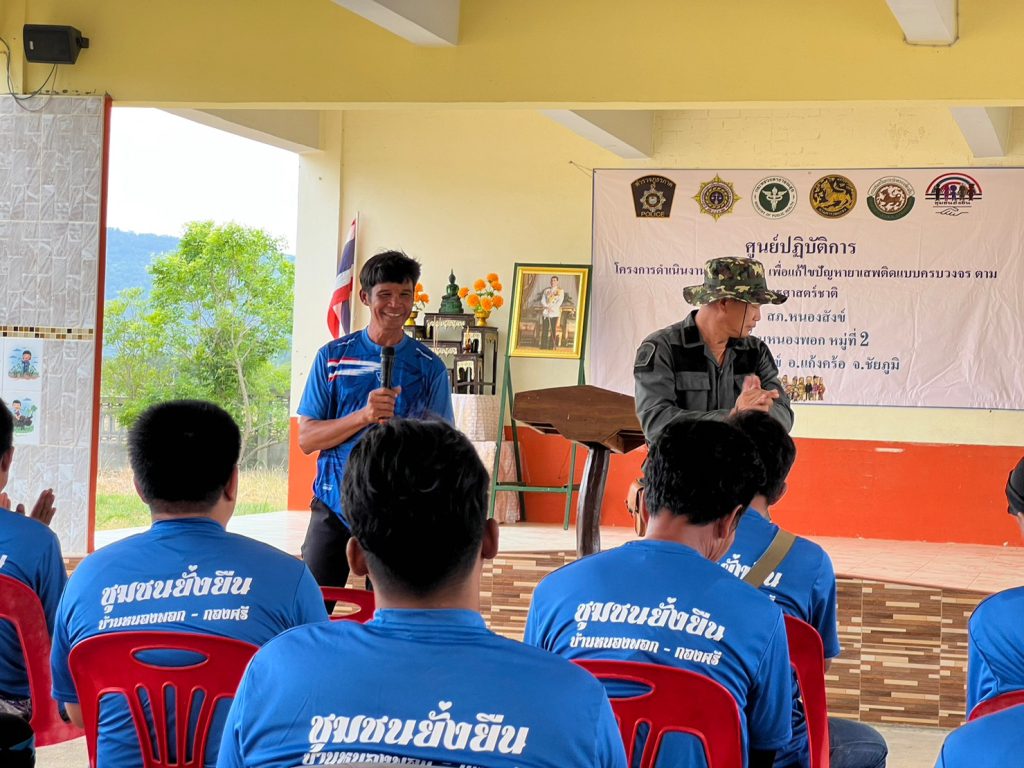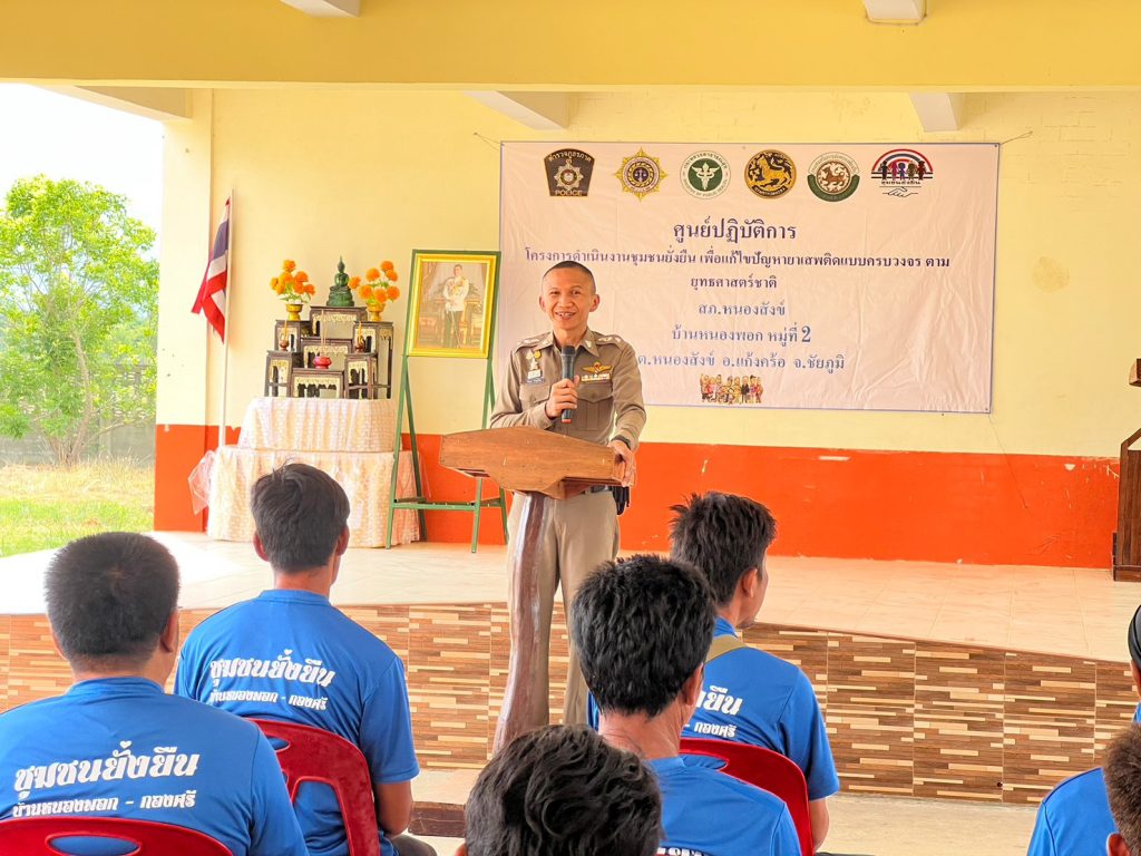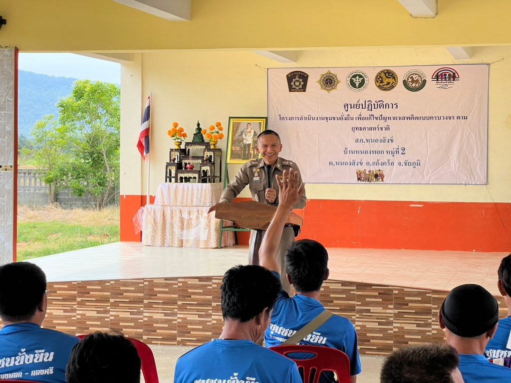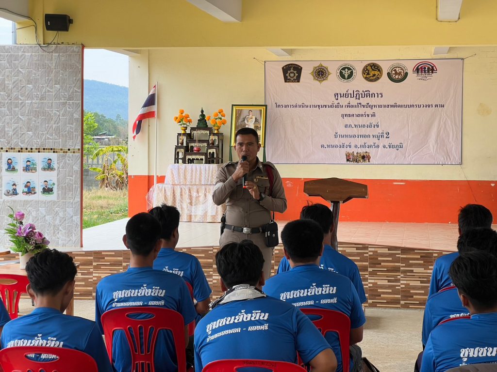 พ.ต.ท.นิธิรุจน์ ชัยรัฐนิธิยศ สว.สภ.หนองสังข์ เป็นประธานในการบรรยายความรู้ให้แก่ผู้เสพยาเสพติด ที่เข้าร่วมบำบัดฟื้นฟูในโครงการชุมชนยั่งยืนฯ
