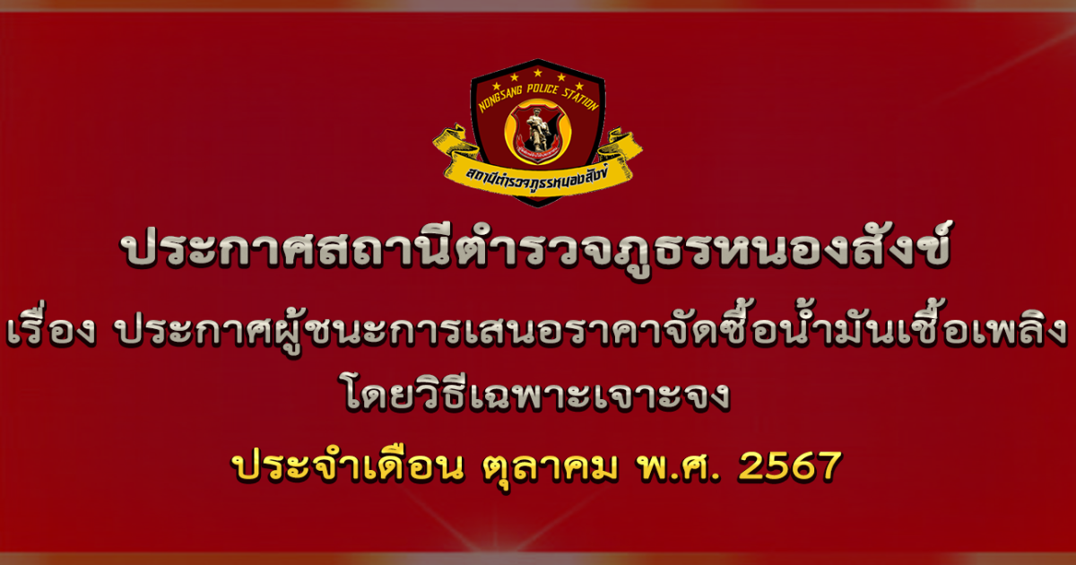 ประกาศผู้ชนะการเสนอราคาจัดซื้อน้ำมันเชื้อเพลิง โดยวิธีเฉพาะเจาะจง ประจำเดือน ตุลาคม พ.ศ. 2567