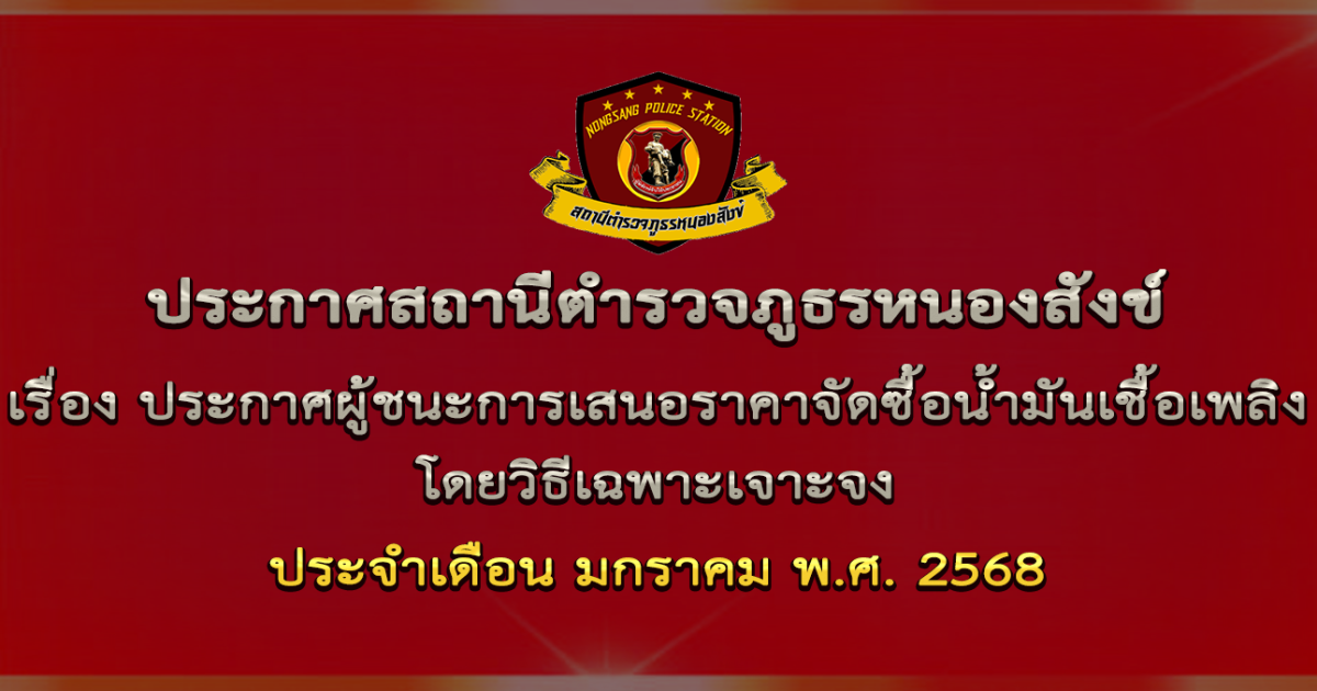 ประกาศผู้ชนะการเสนอราคาจัดซื้อน้ำมันเชื้อเพลิง โดยวิธีเฉพาะเจาะจง ประจำเดือน มกราคม พ.ศ. 2568