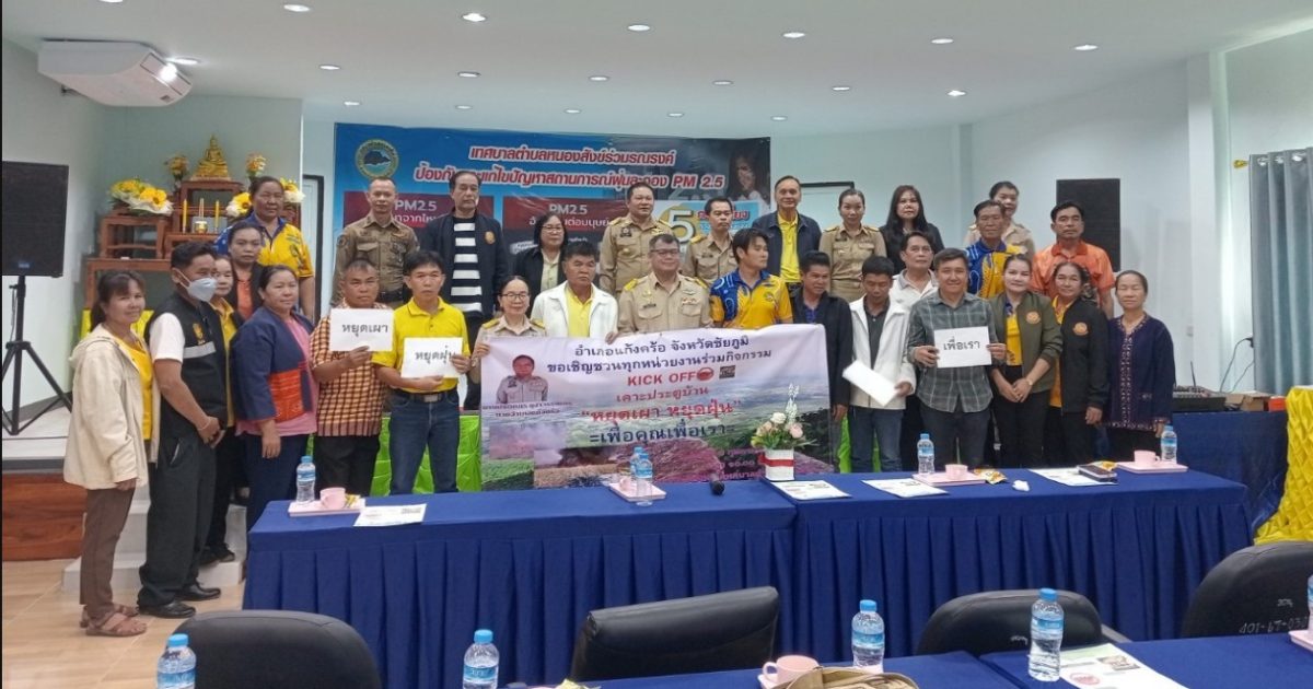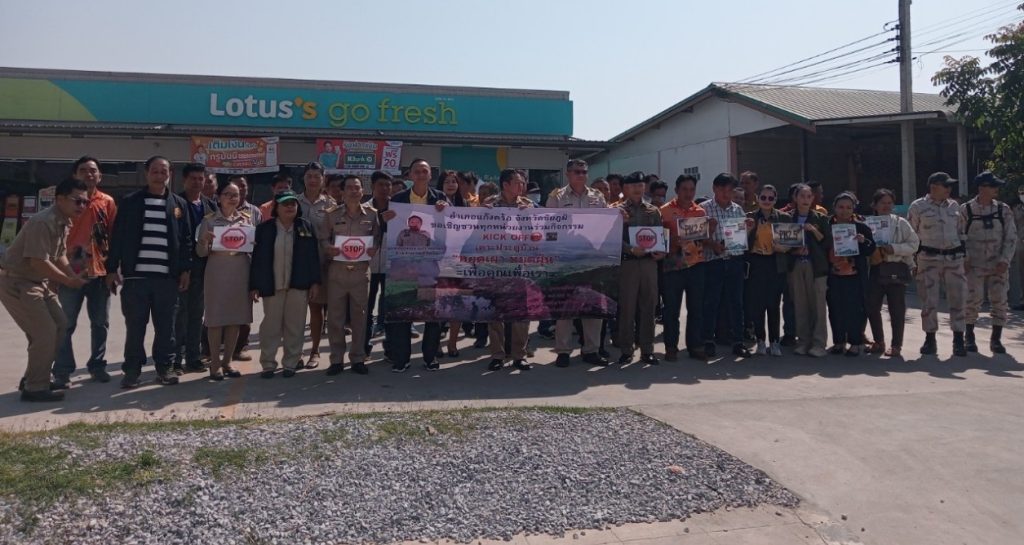 พ.ต.ท.อำพล พูลเพิ่ม สว.สภ.หนองสังข์ ร่วมรณรงค์ป้องกัน PM2.5 ในกิจกรรม เคาะประตูบ้าน หยุดเผา หยุดฝุ่น