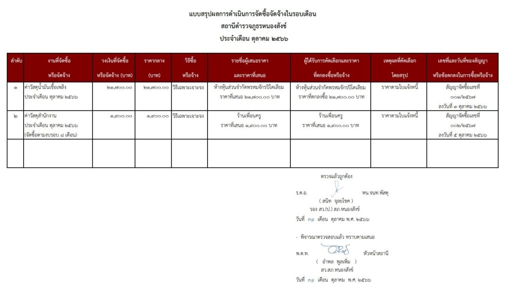 สรุปผลการจัดซื้อจัดจ้างประจำเดือน ตุลาคม พ.ศ. 2566