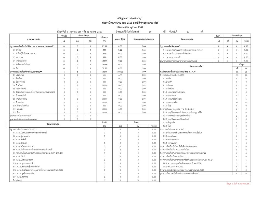 1. ข้อมูลผลการดำเนินงานในเชิงสถิติด้านคดีอาญา 4 กลุ่มตามระบบ CRIMES