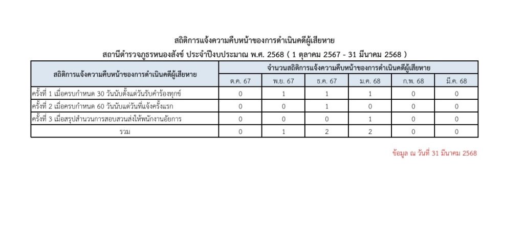 3. ข้อมูลสถิติในการแจ้งความคืบหน้าของการดำเนินคดี