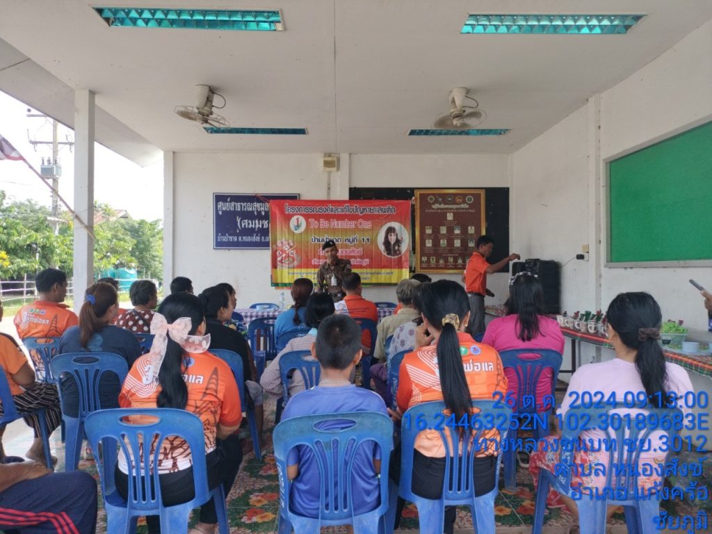 วันที่ 11 พฤศจิกายน 2567 เวลา 09.00 น. นายเชาว์ บำขุนทด  ประธาน กต.ตร.สภ.หนองสังข์ และ พ.ต.ท.อำพล  พูลเพิ่ม สว.สภ.หนองสังข์ พร้อมด้วยคณะกรรมการ กต.ตร.สภ.หนองสังข์ ร่วมกันบรรยายความรู้ในกิจกรรมโครงการรณรงค์แก้ไขปัญหายาเสพติด ทูบีนัมเบอร์วัน ณ ศาลาประชาคมบ้านป่าชาด ม. 11 ต.หนองสังข์ อ.แก้งคร้อ จ.ชัยภูมิ เพื่อให้ความ รู้เกี่ยวกับยาเสพติด และรับฟังปัญหาต่างๆจากชาวบ้าน